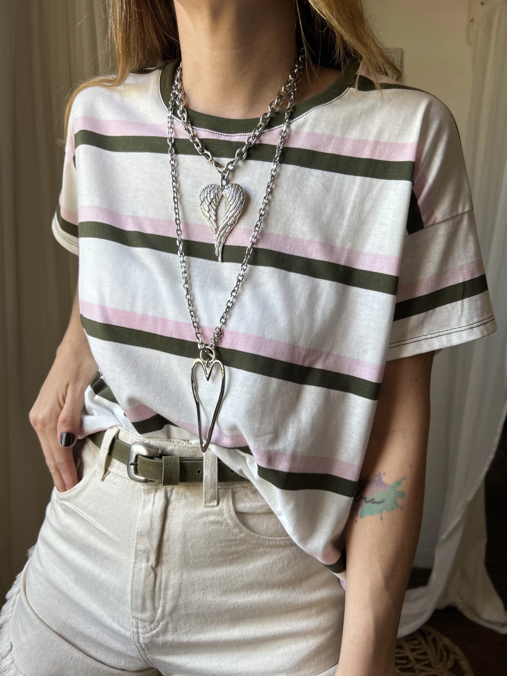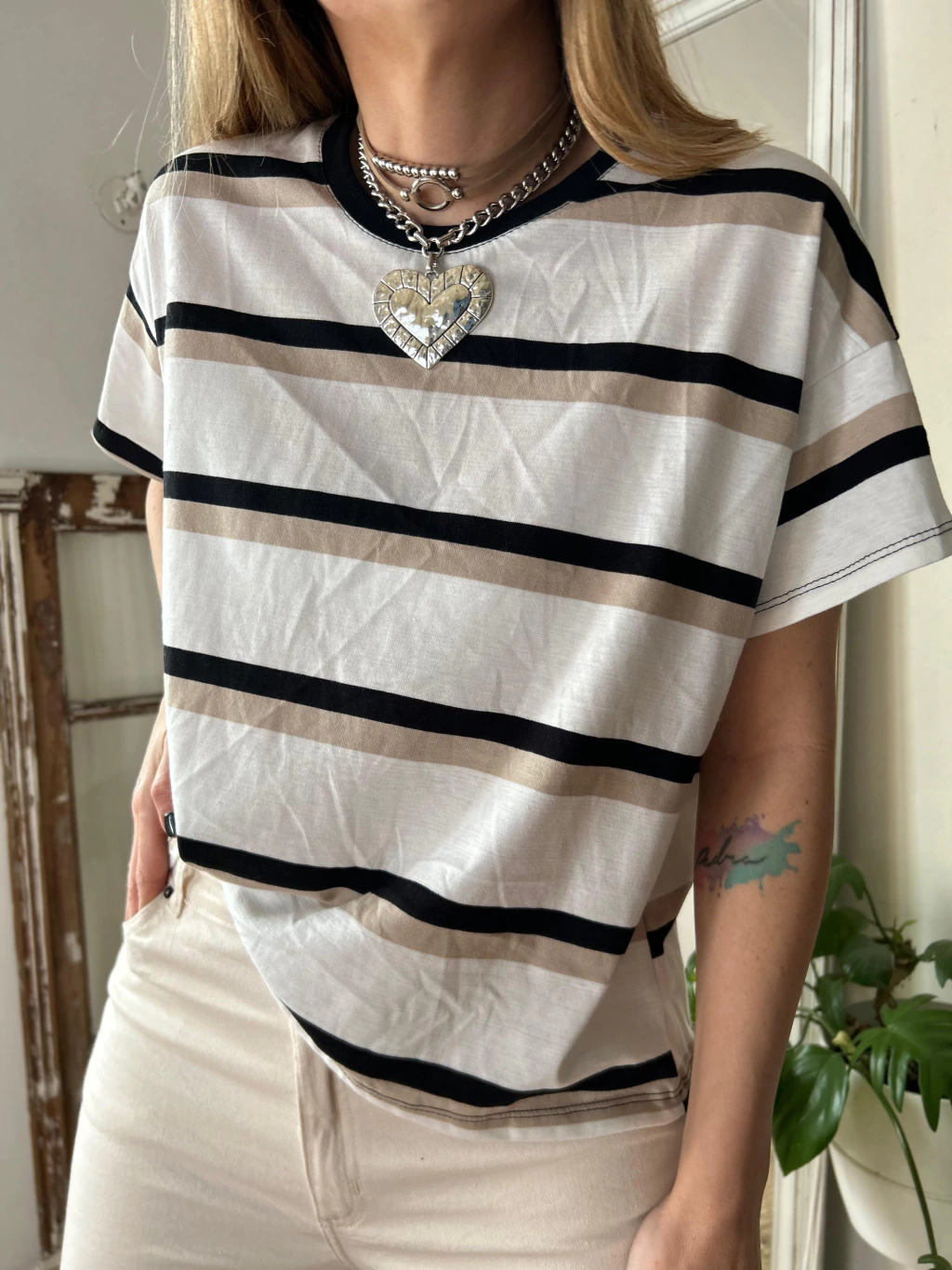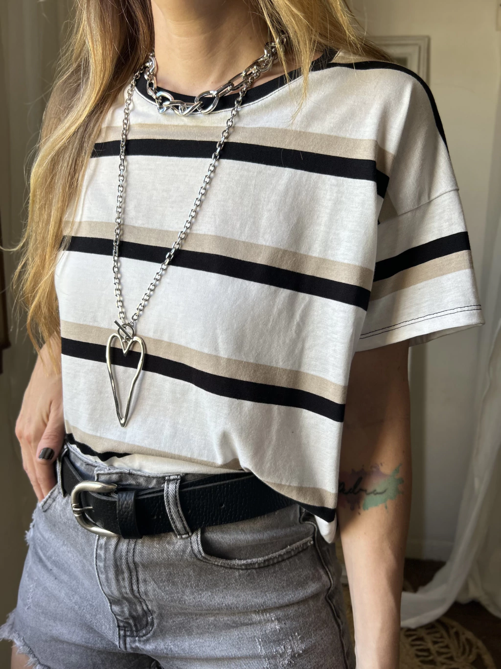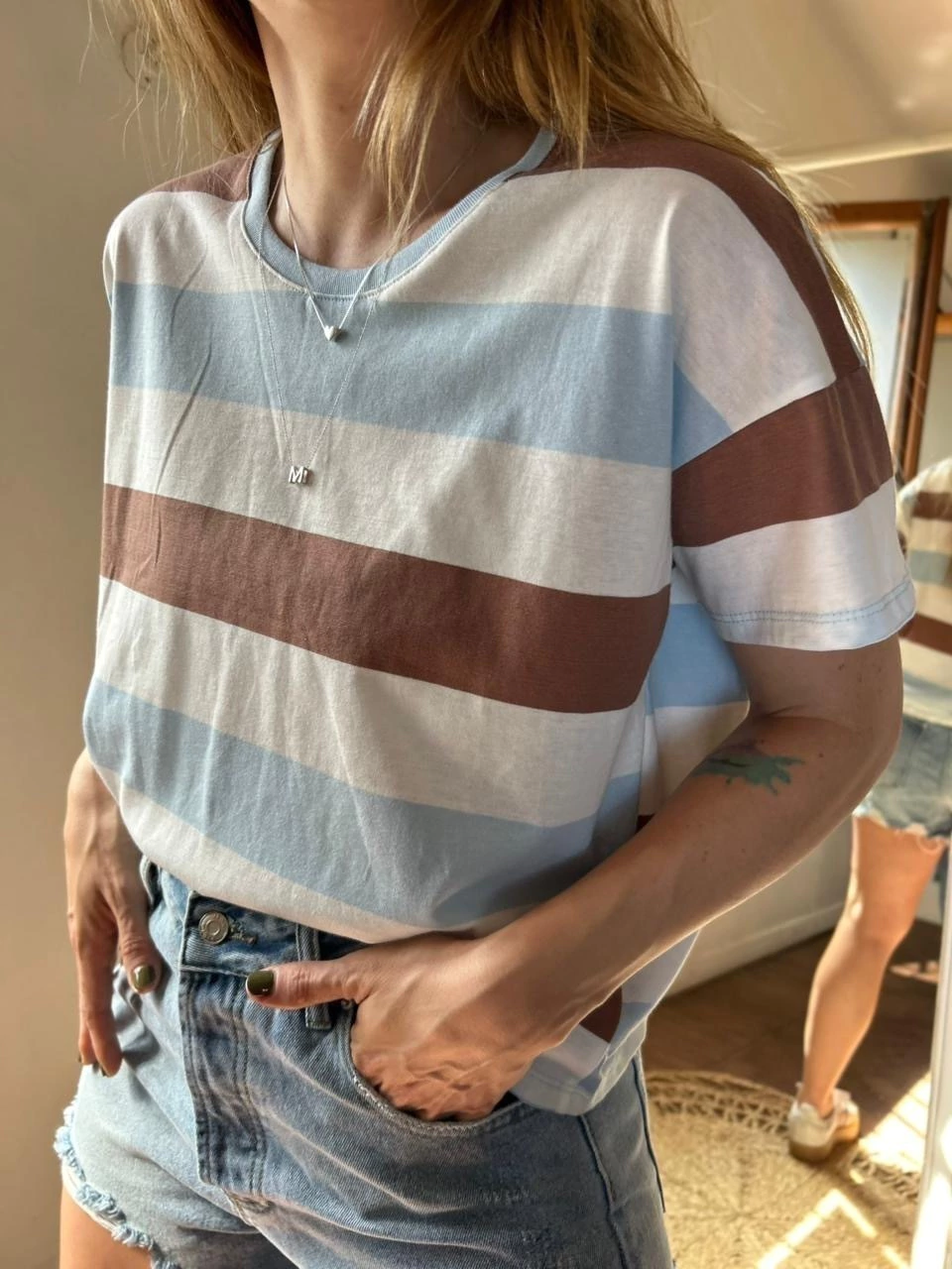 REMERA CUELLO REDONDO RAYADA DE ALGODON